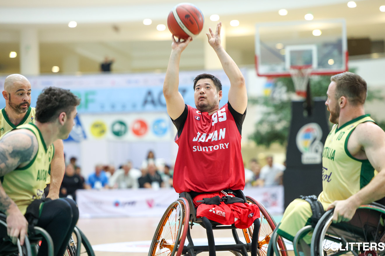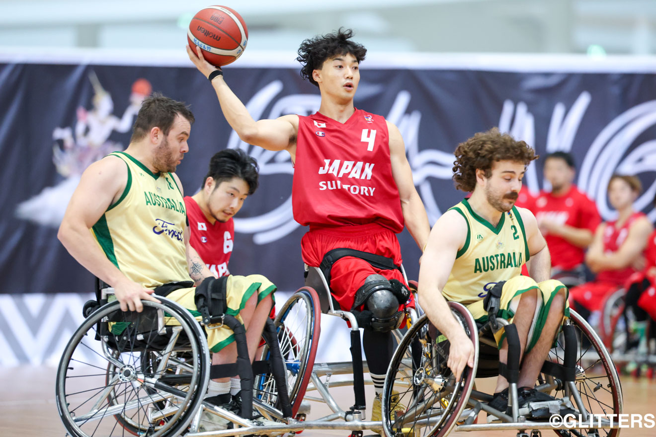 すると続く2Q、京谷HCの采配が的中した。ディフェンスをフラットからプレスに切り替えたことが奏功し、オーストラリアの得点がピタリと止んだのだ。オフェンスにもいい流れが生まれ、赤石竜我(2.5)のミドルシュートを皮切りにして、鳥海連志(2.5)、髙柗義伸(4.0)、香西宏昭(3.5)が競うようにして次々とアウトサイドからシュートをネットに沈めた。怒涛の5連続得点で、一気に1点差まで詰め寄った日本は、ここから激しい攻防戦を繰り広げていった。フィールドゴール(FG)成功率も1Qの29%から43%にまで引き上げ、45%としたオーストラリアとまさに互角の実力を示した。
