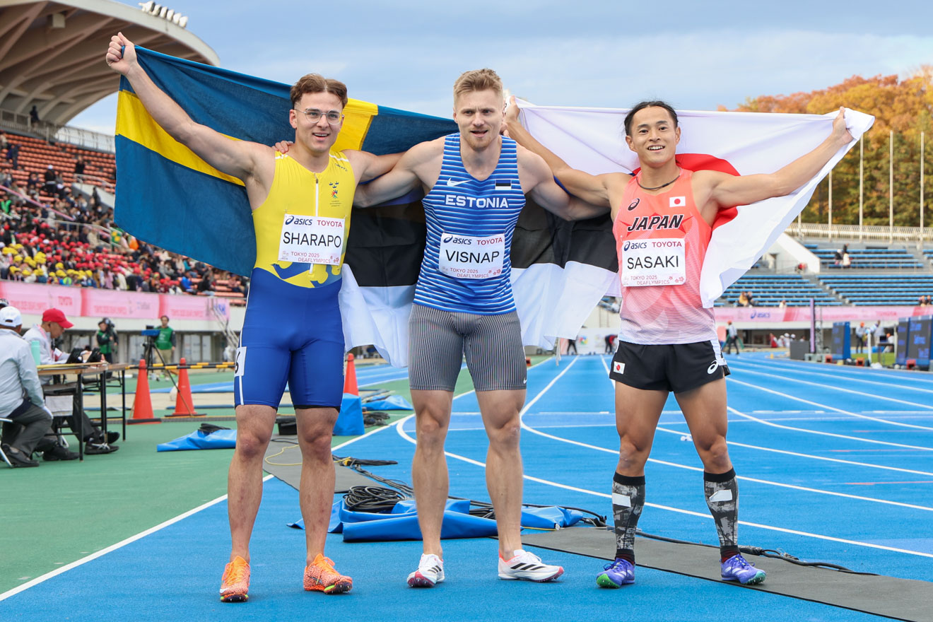 約80の国・地域から3000人を超える選手が集結し、11月15日に開幕した東京2025デフリンピック。大会4日目の18日、駒沢オリンピック公園総合運動陸上競技場で行われた陸上競技では、男子100mで連覇を目指していた佐々木琢磨は銅メダル。男子400m準決勝では山田真樹、村田悠祐、足立祥史の日本人3人がそろって決勝進出を決めた。また最終日を迎えた男子十種競技では、岡部祐介が7位、堀口昂誉は9位となった。