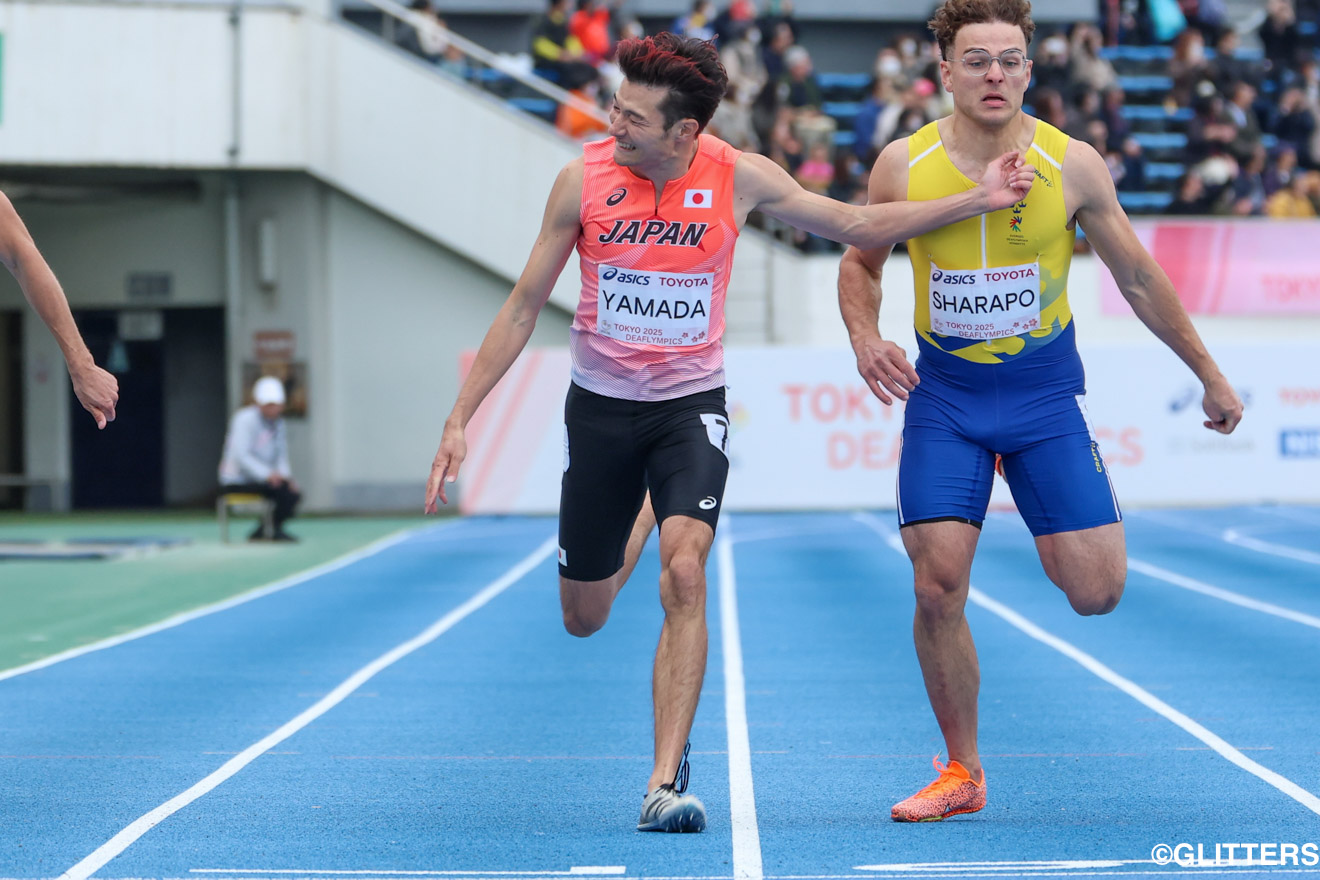 「観客の方がたくさんいる中で走れるというのは、競技者として本当に幸せなこと」と山田。その山田にとって「長年のライバルであり親友でもある」佐々木琢磨は7位入賞となった。佐々木の専門種目は100mだが、同じスプリンターとしてお互いに切磋琢磨し、日本のデフ陸上界をともにけん引してきた。200mはその佐々木と唯一同じレースを走ることのできる種目でもある。この日のレース前には笑顔で握手して健闘を誓い合ったという。