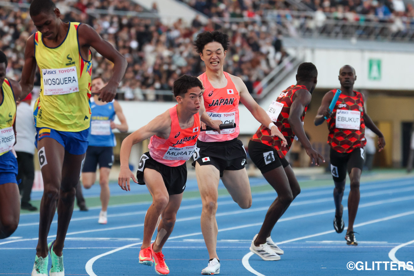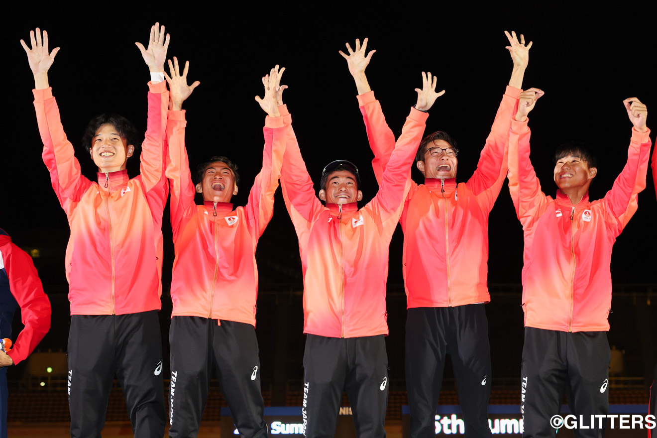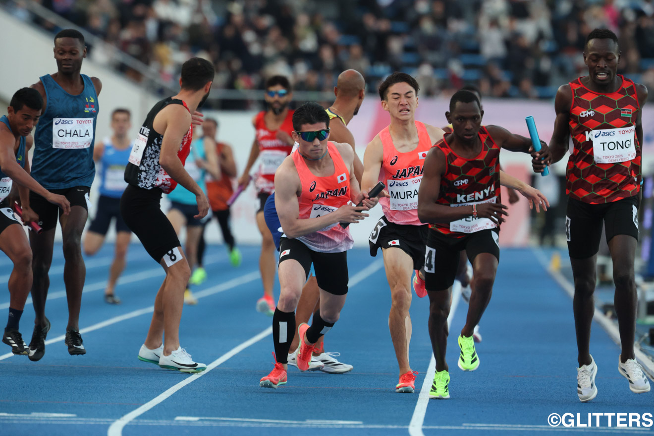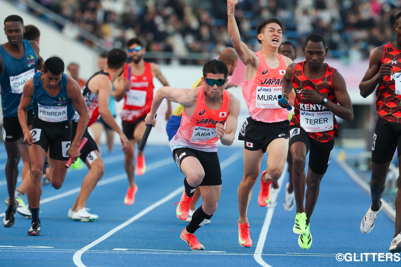 そして男子日本代表チームもまた、快心のレースで会場に詰め掛けた観客を魅了した。まずは第1走者の足立祥史が、コロンビア、ケニアとほぼ同時にトップで第2走者へバトンを渡すと、村田悠祐はケニアにトップの座を許すも離されることなくくらいついた。そして第3走者の荒谷太智もケニアとし烈なトップ争いを繰り広げ、勝負の行方はアンカー山田真樹に託された。