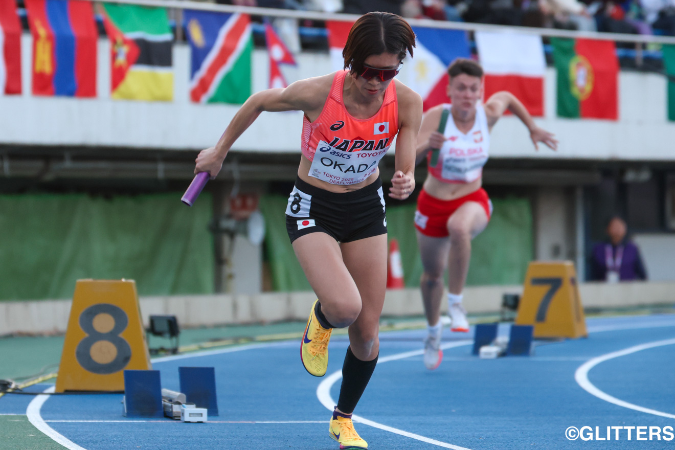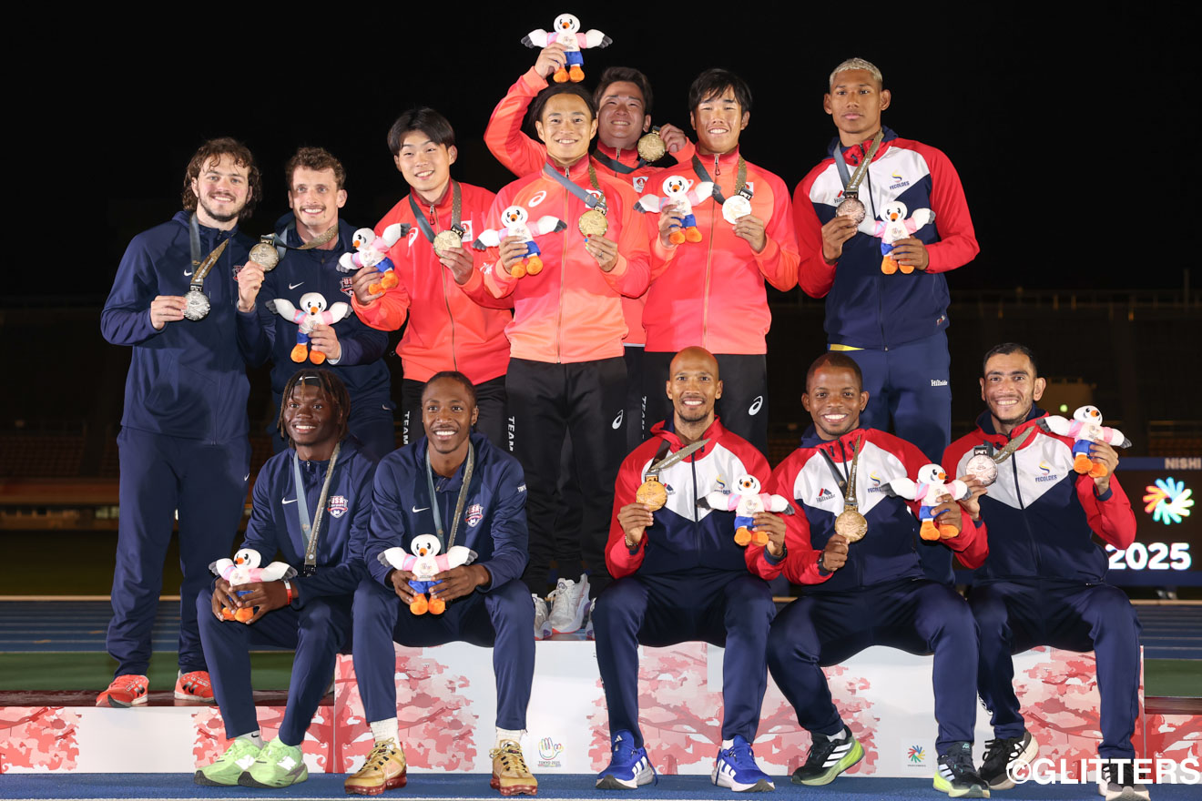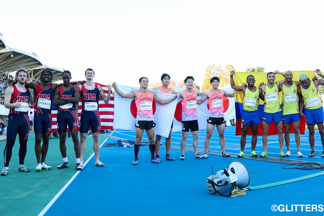 男子400mリレーでは、前日の予選を組2着、全体でも3位で決勝進出を決めた4人がそのまま決勝のメンバーとなった。まずは岡本隼が好スタートを切り、第2走者の冨永幸佑、第3走者の坂田翔悟もしっかりとバトンをつないだ。レースは第3走者の時点でメダル争いは日本、アメリカ、コンロビアの3カ国に絞られていたが、第3走者から第4走者へのバトンの受け渡しがうまくいかなかったコロンビアが脱落。日本とアメリカの一騎打ちとなり、観客で埋め尽くされたホームストレートを2人のアンカーが疾走した。