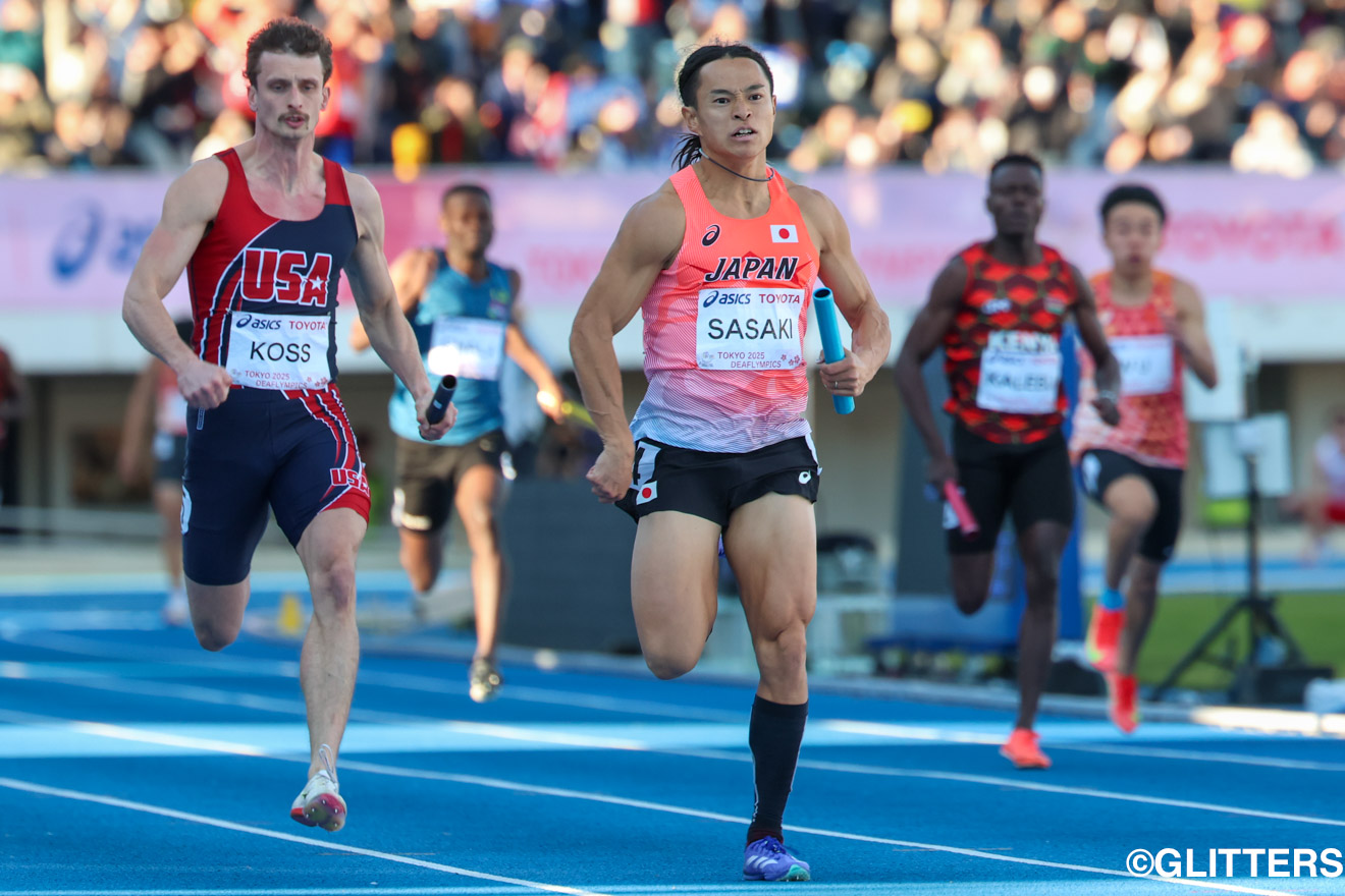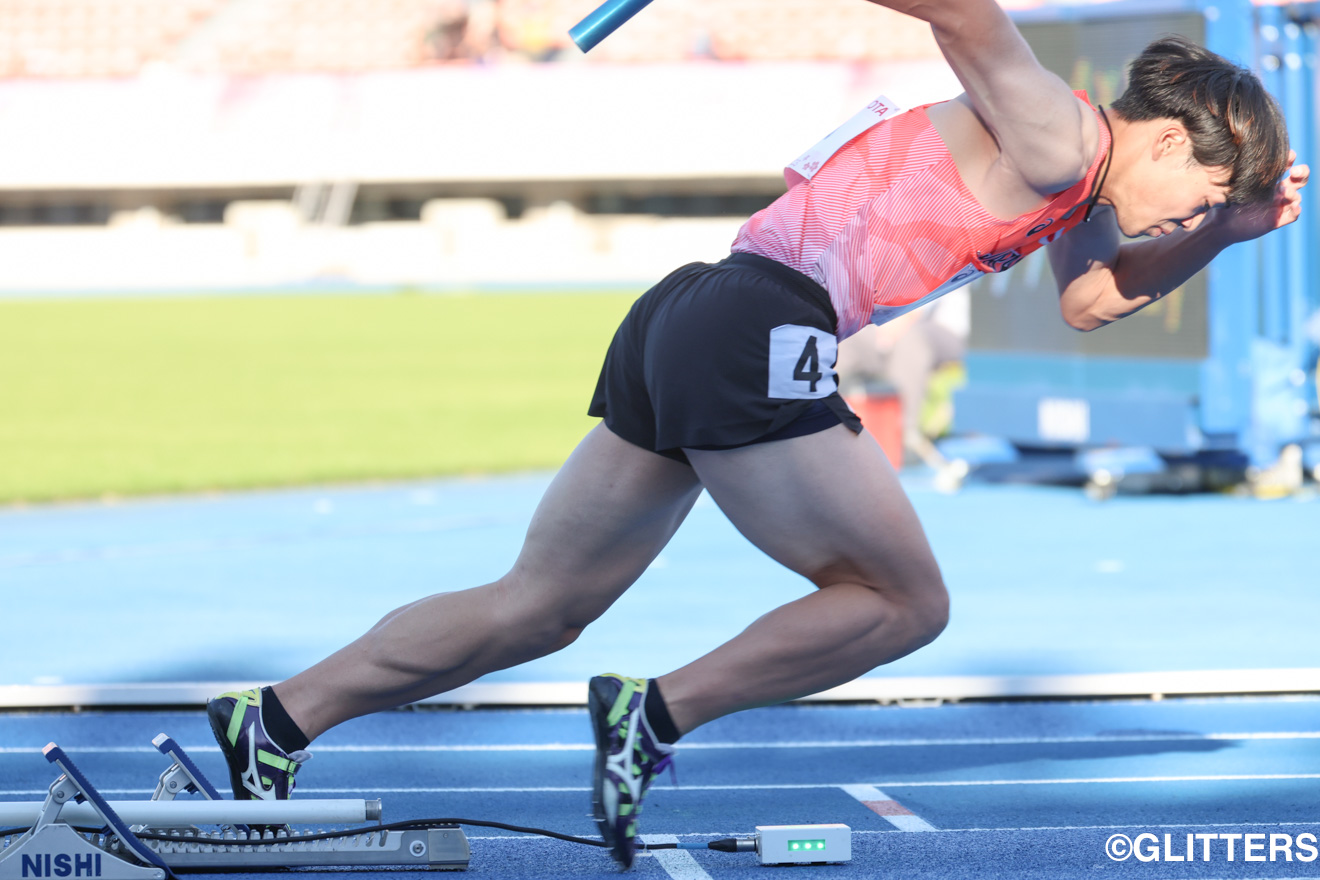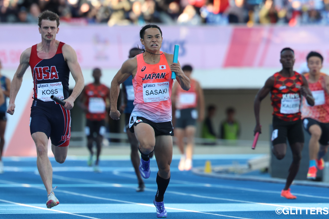 男子400mリレーのアンカーを務めた佐々木琢磨は観客の応援を力に走り切った