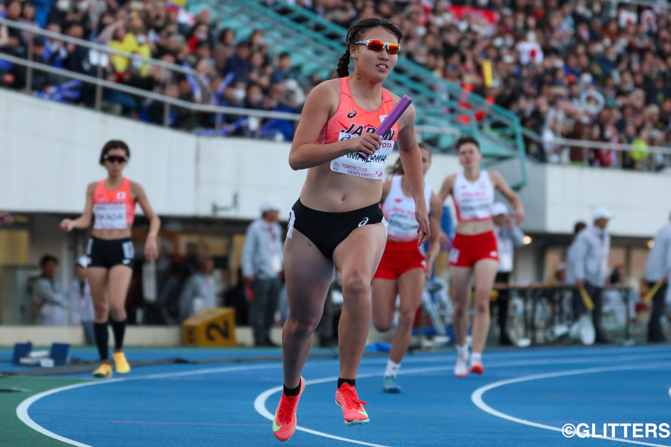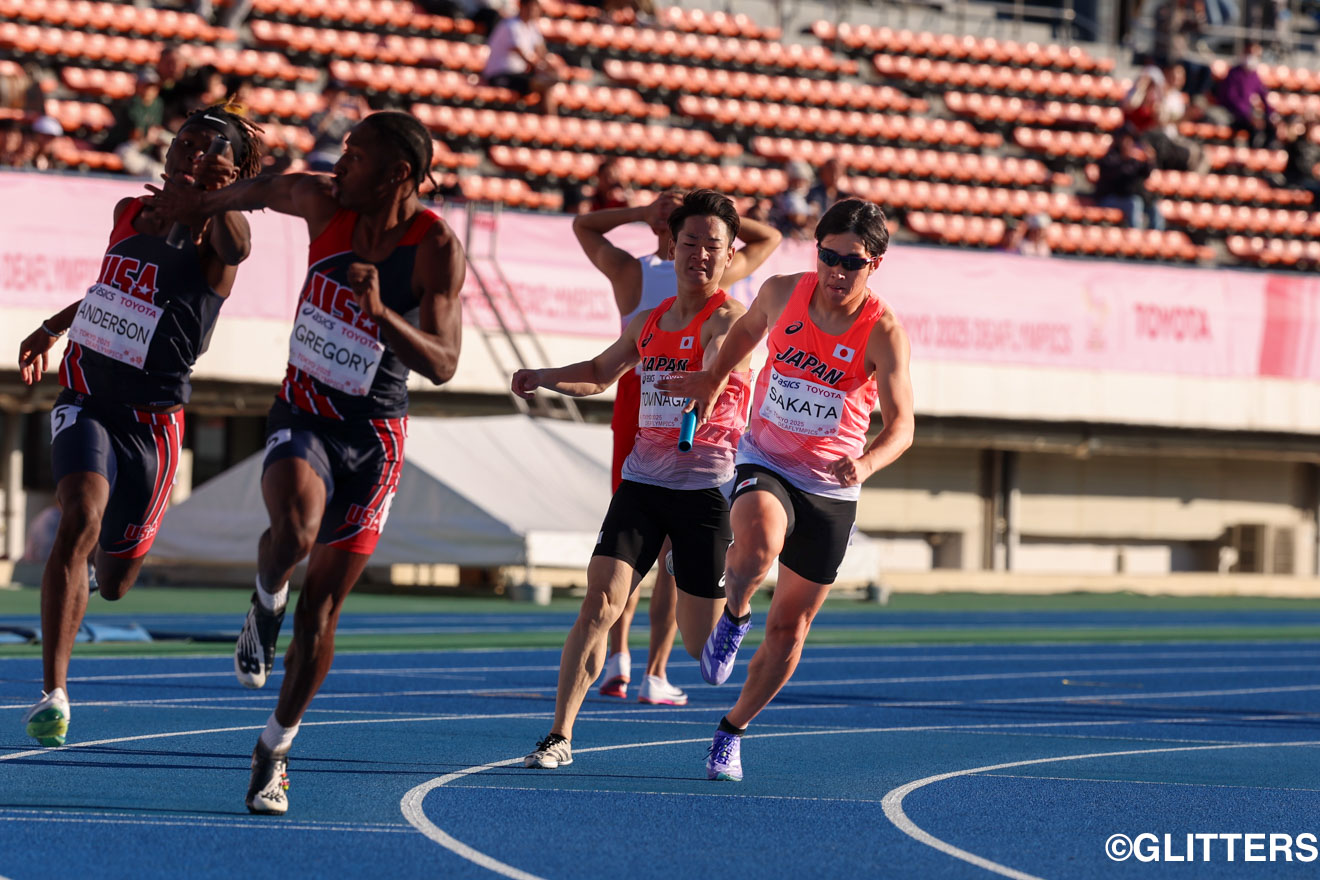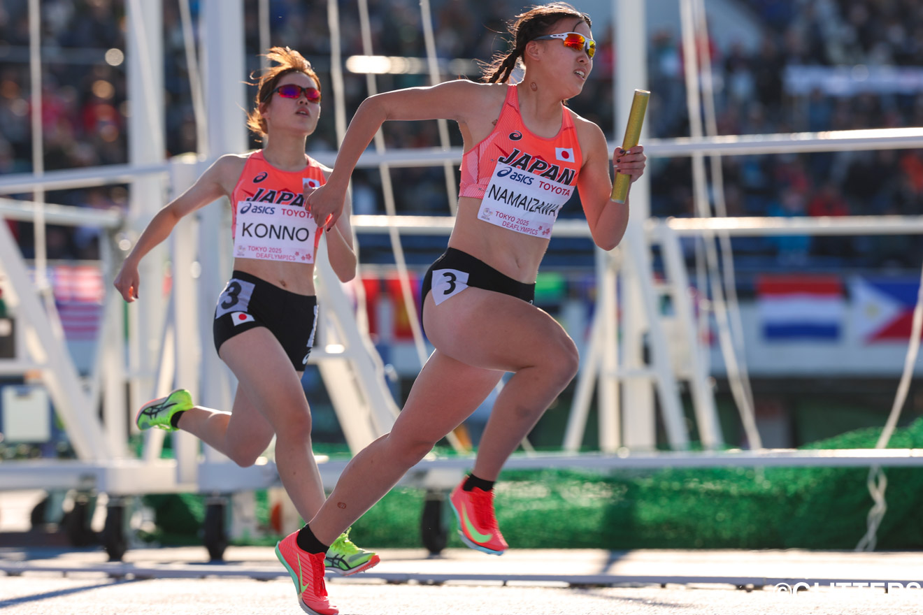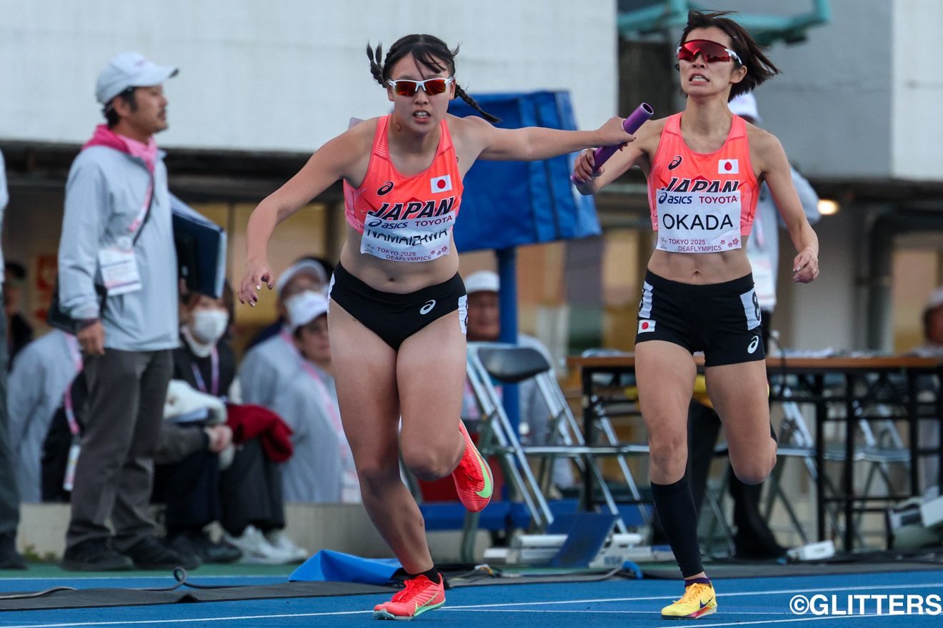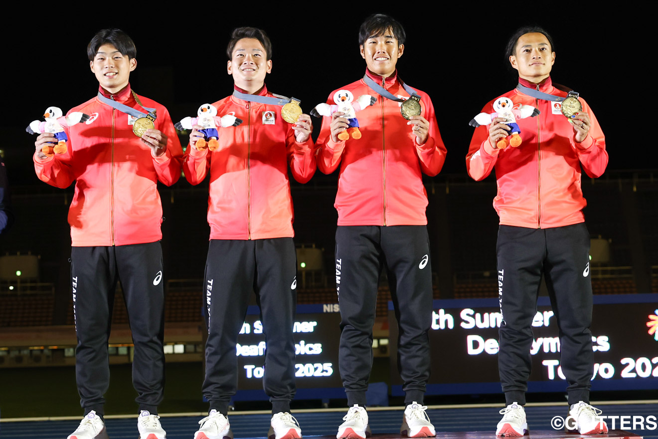 そして、17日から8日間にわたって駒沢陸上競技場で行われてきたトラックとフィールドの最終種目、1600mリレーでもドラマが生まれた。まずはデフリンピックで同種目に初めて出場した女子日本代表チームは、順位こそ6位だったものの、4分10秒54の日本記録更新と最高のパフォーマンスを発揮した。