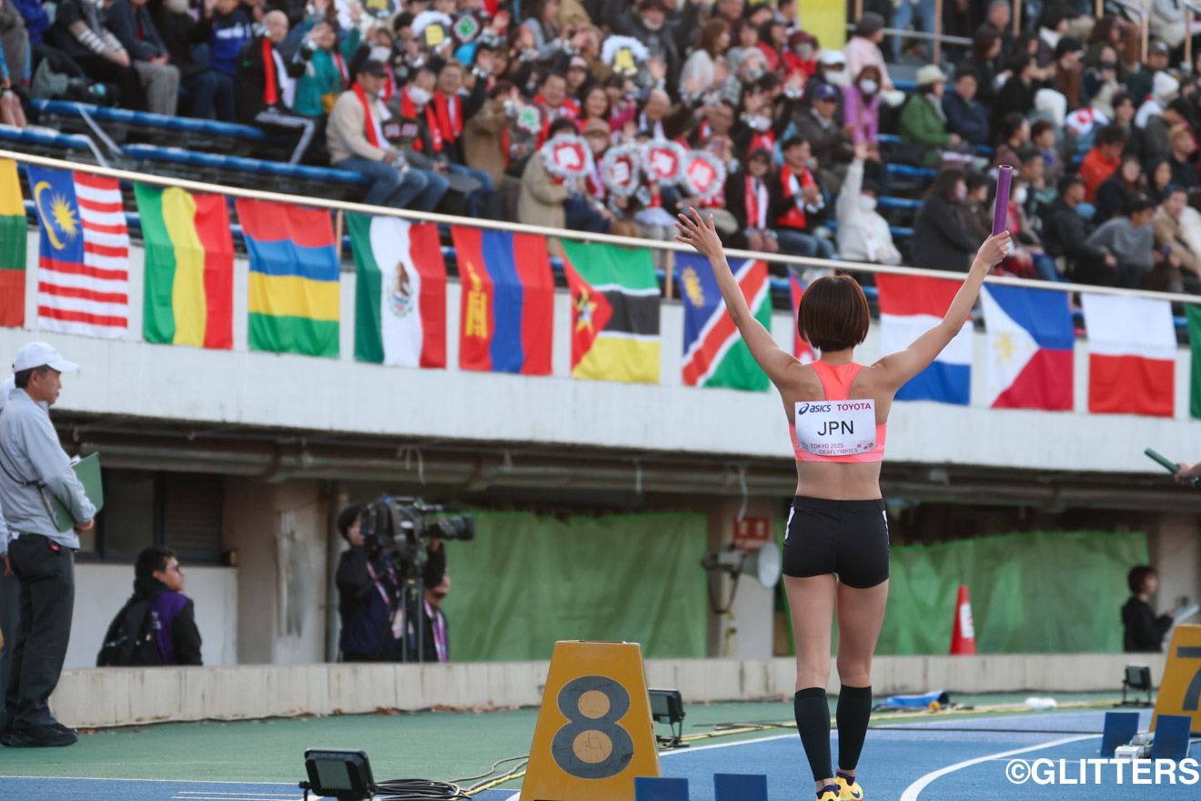 すると、ケニアのアンカーがスタートして間もなく激しく転倒するアクシデントが起きた。すぐ後ろを走っていた山田は一瞬、巻き込まれそうになったが、落ち着いてかわし、そのまま走り続けた。トップを独走する山田の姿に、会場は熱気に包まれ、ボルテージは最高潮に達した。山田は声援を追い風にするかのように快走し、4人でつないできたバトンを掲げながらトップでゴールした。