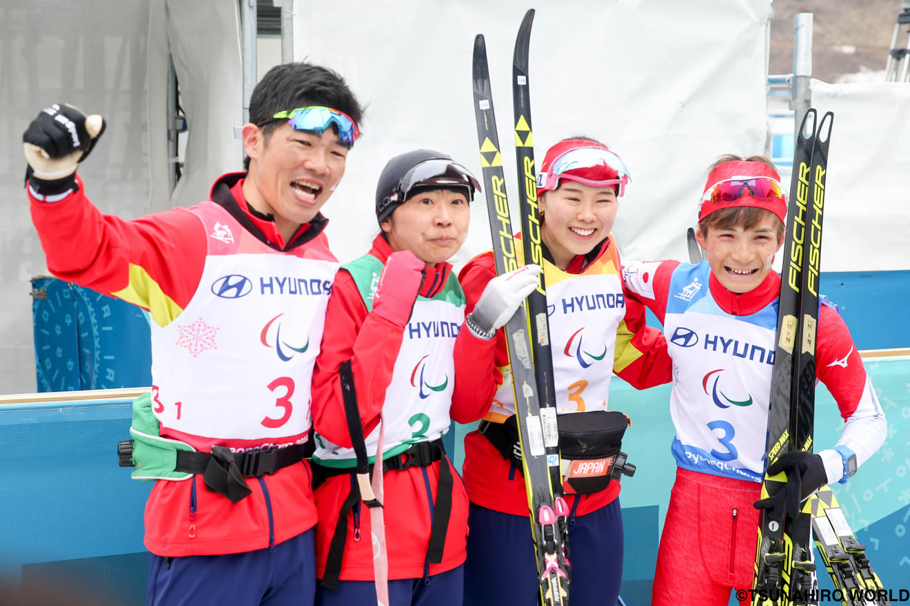 平昌パラリンピック大会最終日となる18日、1人2.5kmのコースを走り、4人でつなぐリレー2種目が行われ、日本は混合リレーに出場。男子10kmクラシカル金メダリストの新田佳浩(37=日立ソリューションズ)、出来島桃子(43=新発田市役所)、阿部友里香(22=日立ソリューションズ)、川除大輝(17=日立ソリューションズJrチーム)の4 選手が順につなぎ、25分48秒0で4位に入賞した。