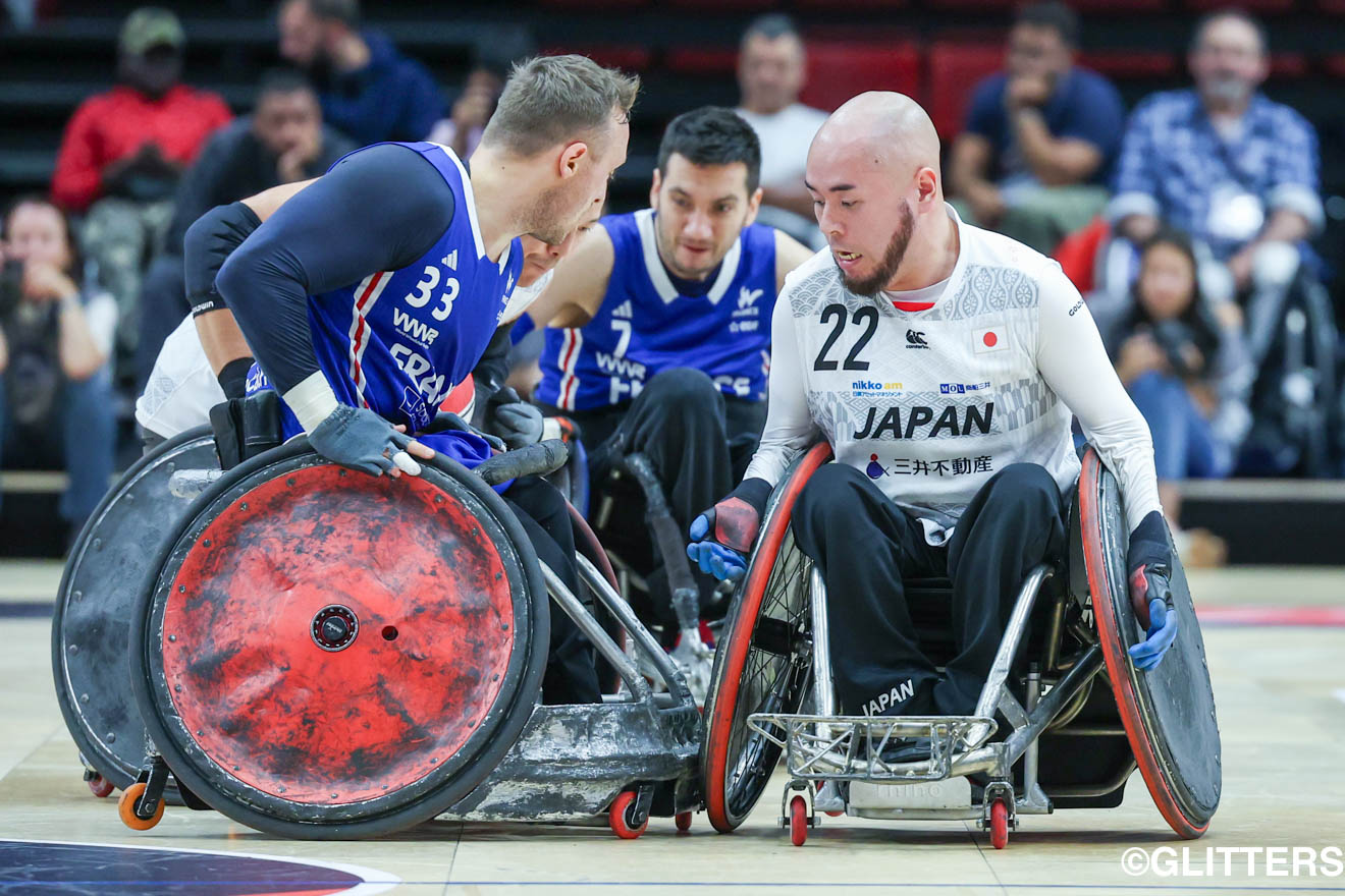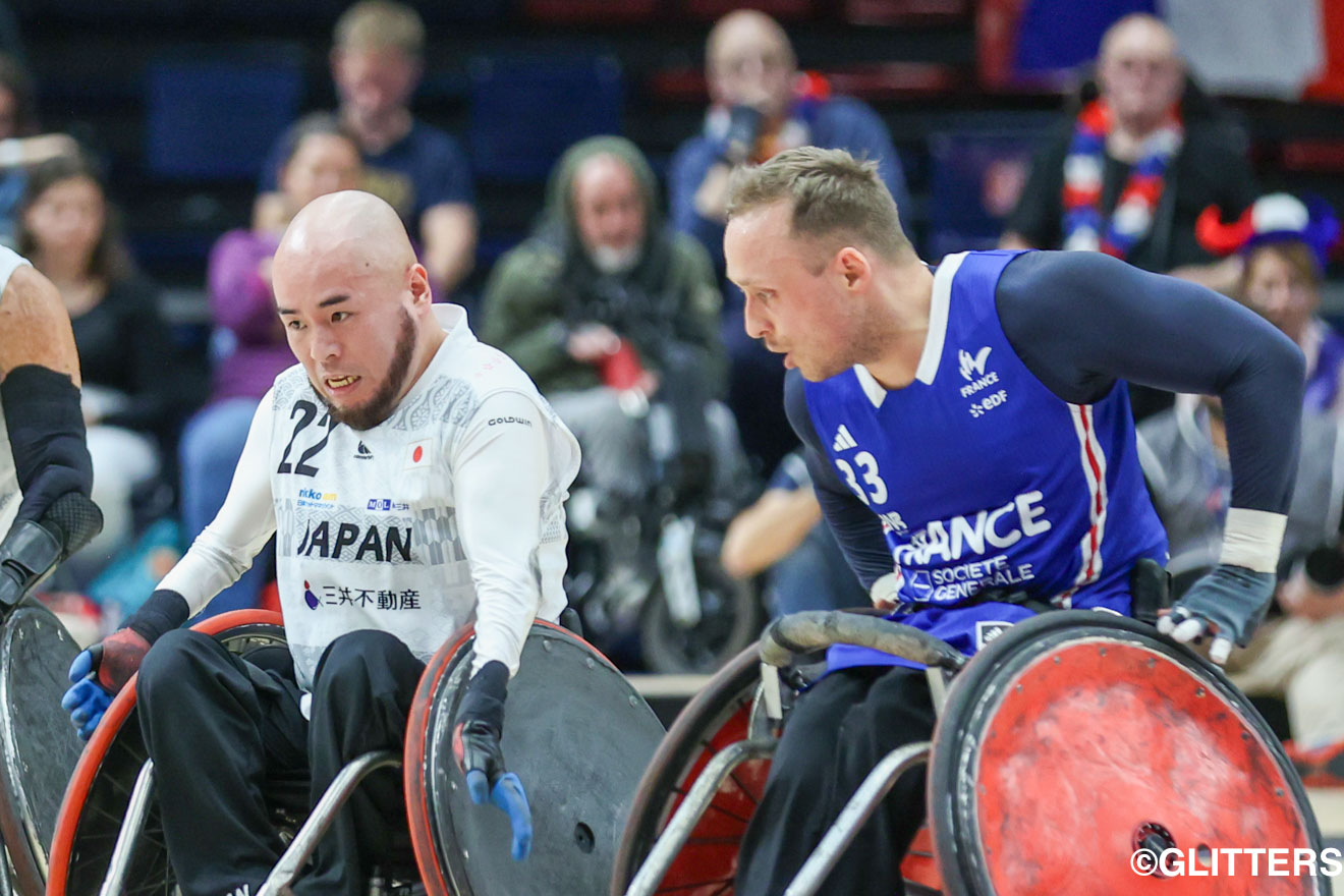 車いすラグビーの世界大会「International Wheelchair Rugby Cup Paris 2023」は大会3日目の10月20日、予選ラウンド最終戦が行われ、ここまで2勝0敗の日本(世界ランキング3位)は、1勝1敗のフランス(同6位)と対戦した。前半、4点のビハインドを負うも、後半に怒涛の巻き返しを図り同点に持ち込んだ日本。最後まで果敢に攻めたが49-50で惜敗した。