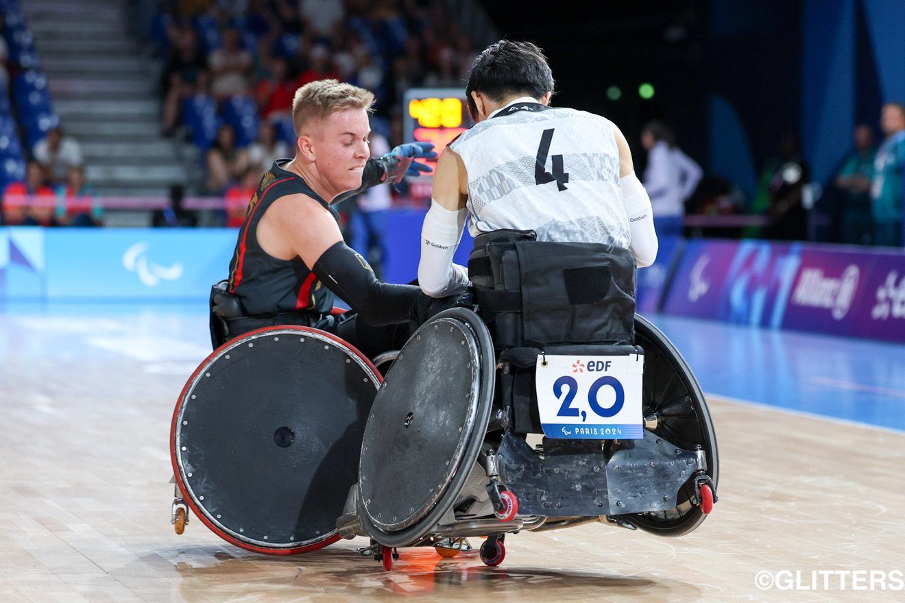 パリ2024パラリンピック大会2日目の8月29日、車いすラグビーの予選ラウンド4試合がシャン・ド・マルス・アリーナで行われ、プールAの日本(世界ランキング3位)はドイツ(同9位)との一戦に臨んだ。序盤こそ緊張や硬さが見られたものの、徐々にリズムを取り戻すと相手を大きく引き離し、55-44で勝利を収め、初戦を白星で飾った。