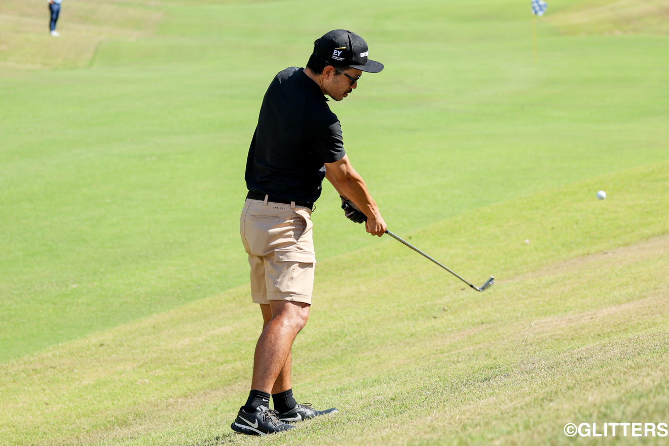 大会2日目は前日のスコア順で組が決定し、一般男子はトップの前島を追う展開となった。前島がバーディパットを決めれば、2位の渕も食らい付く一進一退の攻防が続き、前半ホールをイーブンパーで折り返した。後半最初のIN10ホールパー5で渕がバーディパットを綺麗に沈め、前日と合わせトップと1打差となる。逆転の兆しが見え始めたかに思えたが、今大会で好調を維持している前島がIN13、14ホールと立て続けにバーディを奪い、1度もトップを譲ることなくそのまま優勝を決めた。