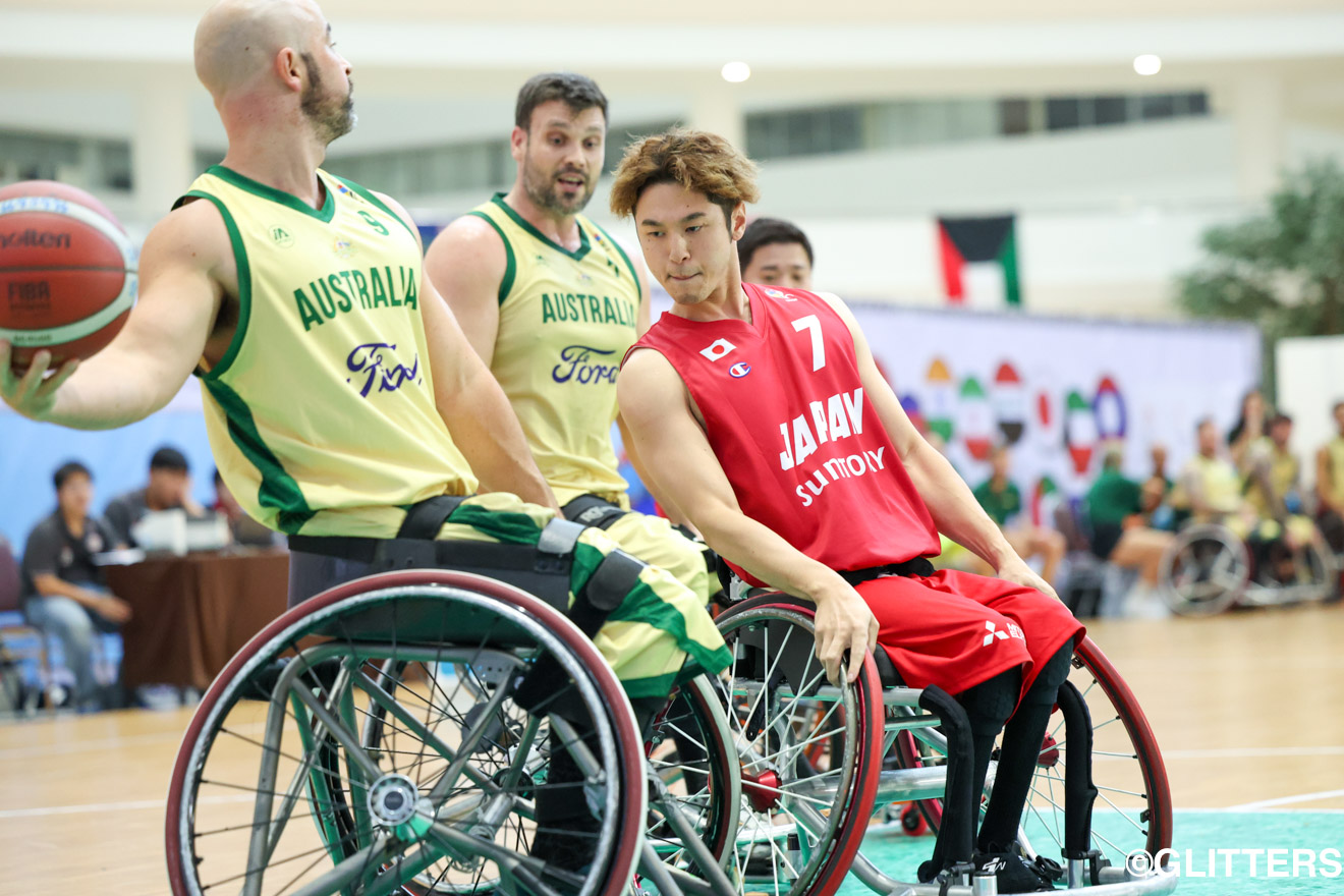 すると続く2Q、京谷HCの采配が的中した。ディフェンスをフラットからプレスに切り替えたことが奏功し、オーストラリアの得点がピタリと止んだのだ。オフェンスにもいい流れが生まれ、赤石竜我(2.5)のミドルシュートを皮切りにして、鳥海連志(2.5)、髙柗義伸(4.0)、香西宏昭(3.5)が競うようにして次々とアウトサイドからシュートをネットに沈めた。怒涛の5連続得点で、一気に1点差まで詰め寄った日本は、ここから激しい攻防戦を繰り広げていった。フィールドゴール(FG)成功率も1Qの29%から43%にまで引き上げ、45%としたオーストラリアとまさに互角の実力を示した。