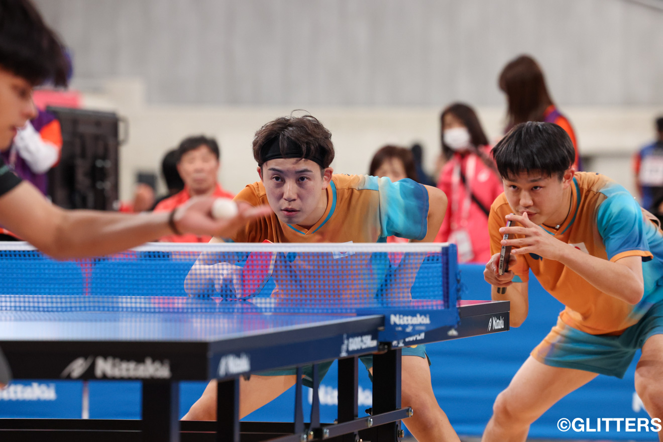 男子ダブルスでは、2回戦から登場した伊藤優希、川口功人ペアは、多彩なサーブでポイントを奪うなどして優位に試合を進め、4-0のストレート勝ちで初戦を白星で飾った。続く準々決勝では中国ペアと対戦。連盟の強化合宿以外にも2人で練習を重ねてきたという伊藤と川口。その成果を発揮し、1ゲーム目を3-11で落としたものの、2ゲーム目を11-6で奪い返し、試合を振り出しに戻した。しかし、3、4ゲーム目はいずれも先にゲームポイントとしながらも奪うことができず、5ゲーム目は5-11。ゲームカウント1-4で敗れ、ベスト8に終わった。