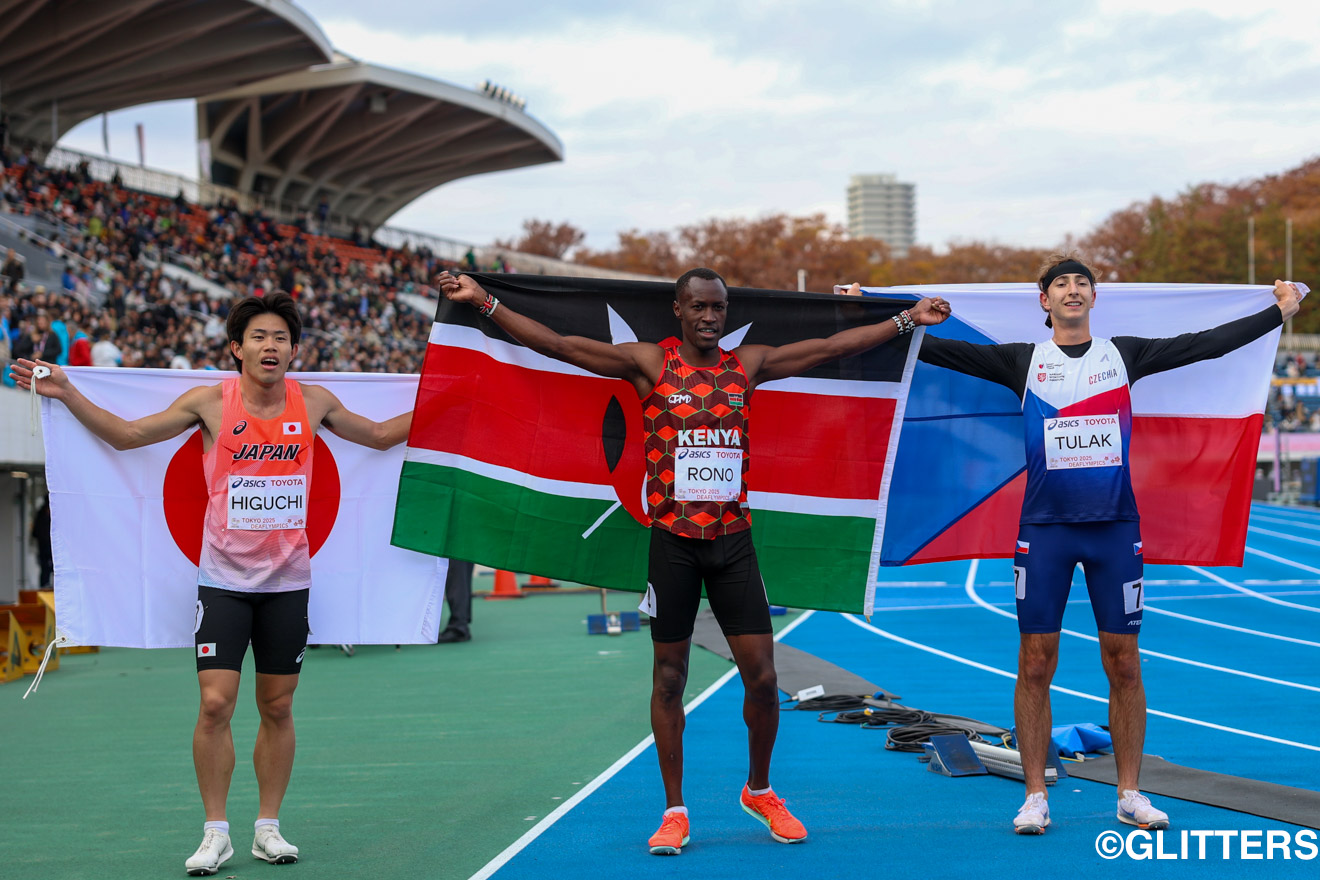 男子800m決勝で力強い走りを見せたのが、日本記録保持者で中距離のエース・樋口だ。1周目には海外勢からひじで妨害される接触があったが、「僕も大阪出身なので負けなかった」と物おじすることなく冷静に対処したという樋口は4、5番手の位置につけながら最初の400mを走った。そして2周目に入って先頭のケニア選手が一気にペースを上げ、さらに残り200mになると個人の中立選手として参加しているロシアの選手がスパート。それまで団子状態だったレースが大きく動いた。次々とメダル争いから脱落していったなか、「スパートにもついていくことができた」という樋口はしっかりとくらいついていった。