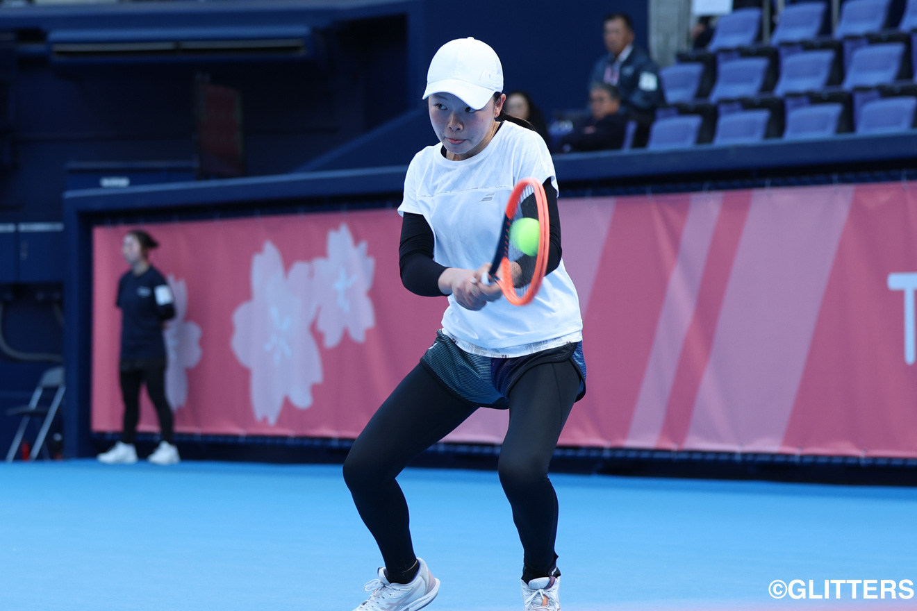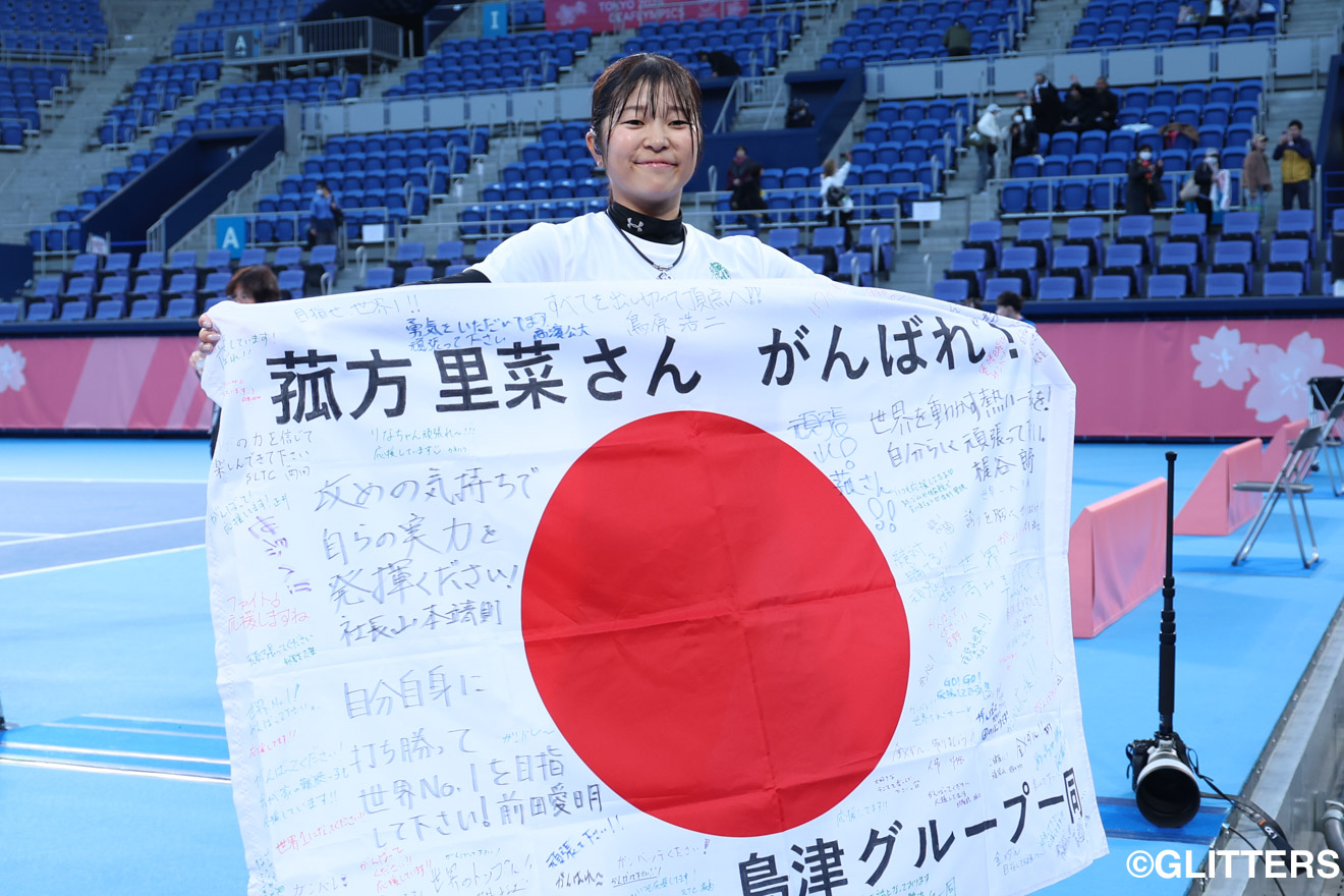 力強いストロークを武器に主導権を握った菰方里菜。正確なコース取りで相手を圧倒した