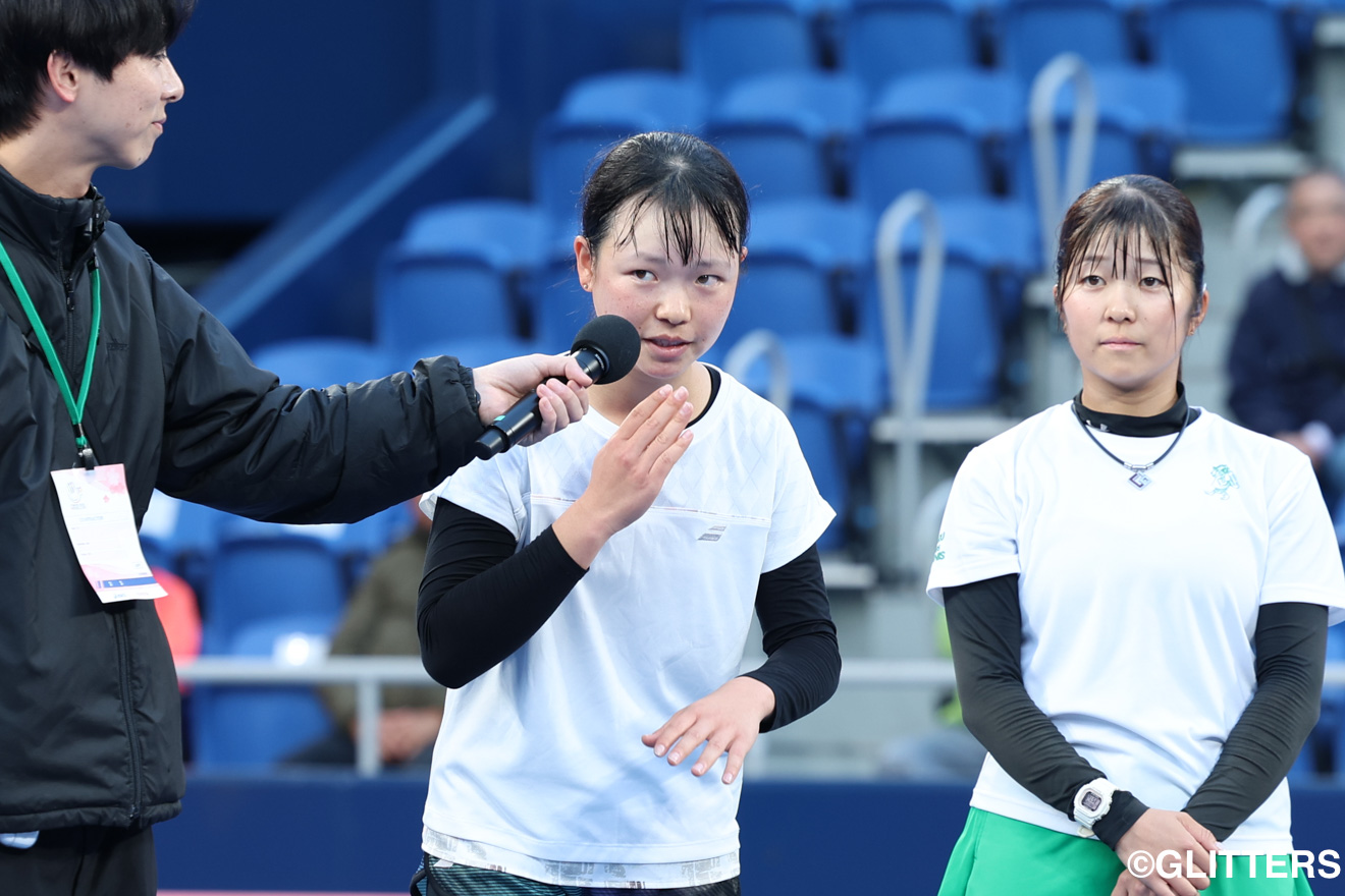 最初のポイントを取ったことが試合の流れを作った。競技問わず難しいとされる試合の入り、菰方がファーストサービスできっちりコースを狙うと、その返球を鈴木がボレーで仕留めた。菰方は「立ち上がりが良かった」と振り返ったが、それは第1ゲームをラブゲーム(4-0)でものにすることにもつながった。