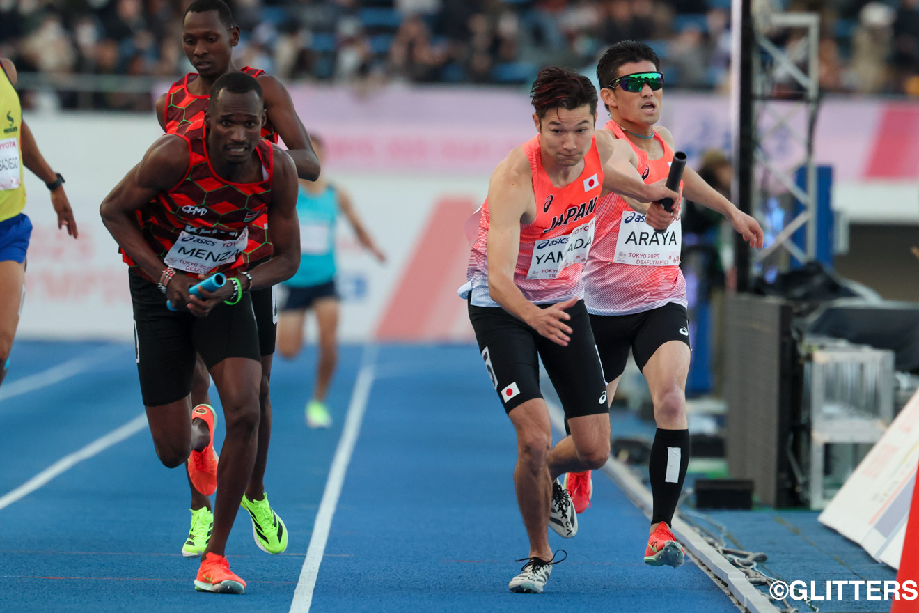 そして男子日本代表チームもまた、快心のレースで会場に詰め掛けた観客を魅了した。まずは第1走者の足立祥史が、コロンビア、ケニアとほぼ同時にトップで第2走者へバトンを渡すと、村田悠祐はケニアにトップの座を許すも離されることなくくらいついた。そして第3走者の荒谷太智もケニアとし烈なトップ争いを繰り広げ、勝負の行方はアンカー山田真樹に託された。
