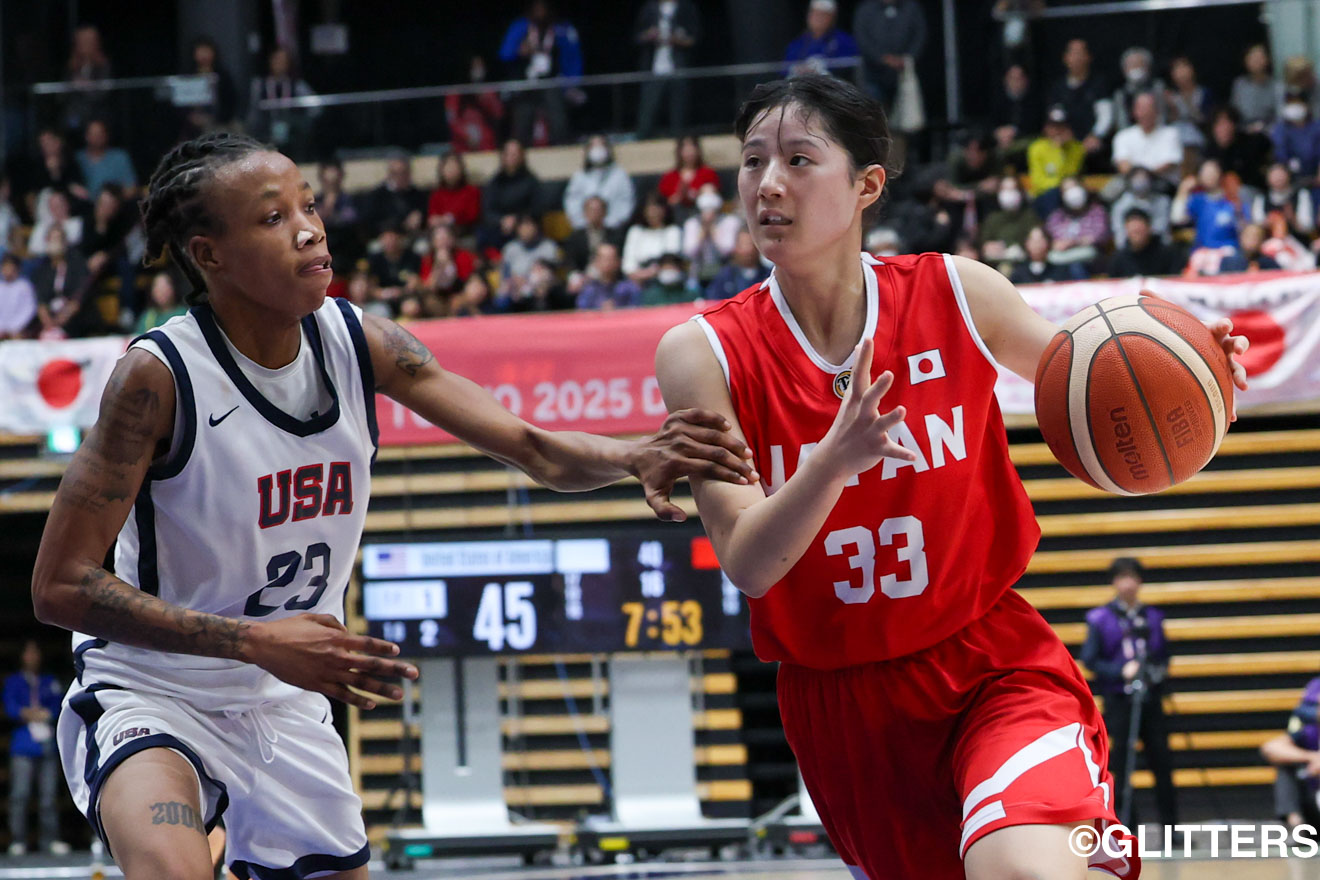 ところが、キャプテン若松が「自分たちにとって一番難しい」としたハーフタイム後の3Q、アメリカが一気にギアを上げ、わずか1分半の間に37-37と試合を振り出しに戻した。アメリカはさらにフィジカルで圧倒したものの、それでも日本は屈しなかった。「アメリカが追いついてきて少し慌ててしまったが、それでもコート上の5人は“自分たちがやることは変わらない"“大丈夫、大丈夫"とコミュニケーションを取っていたので、落ち着いてプレーを続けられた」と若松。すると終盤には丸山香織が値千金の3ポイント、さらに加藤志野はドライブで切り込んで相手のファウルを誘い、フリースローを2本ともに沈めると、再び丸山が得点。日本は怒涛の攻撃で50-45とリードし、最後の4Qへと突入した。