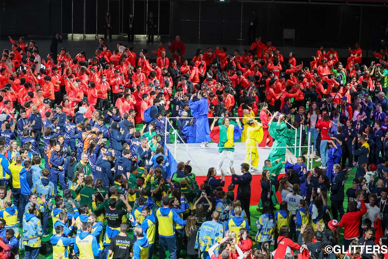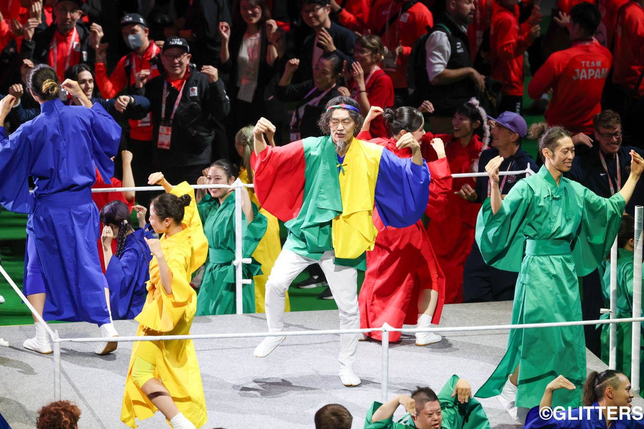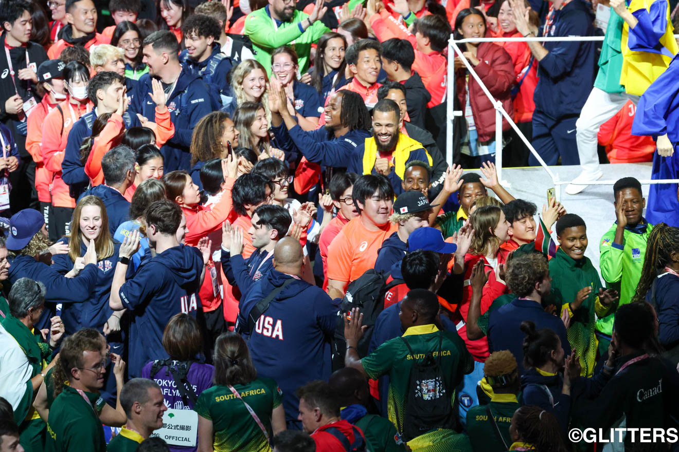 閉会式の最後には、フランス語の「bon(良い)」と日本文化の「盆」をかけ、「良い未来」という意味が込められた、アーティスティックプログラムの「ボンミライ!(Bon Mirai!)」が行われた。2カ所に設置された“やぐら"に色とりどりの衣装をまとったパフォーマーたちが登場すると、各国の選手たちも一緒になって盆踊りを楽しみ、12日間にわたって行われた熱戦のフィナーレを飾った。